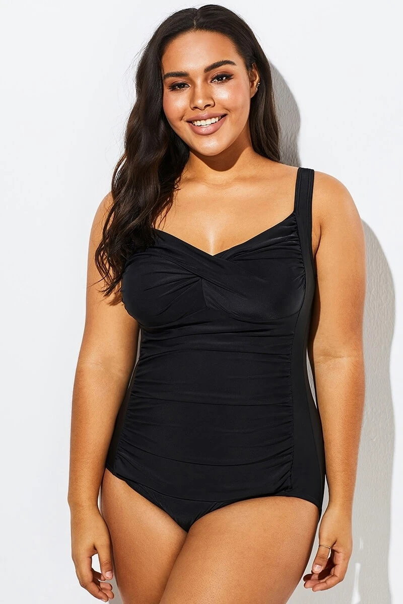 Black Twist Front Push Up One Piece Swimsuit -Meetcurve Shop b sfop1911075 1