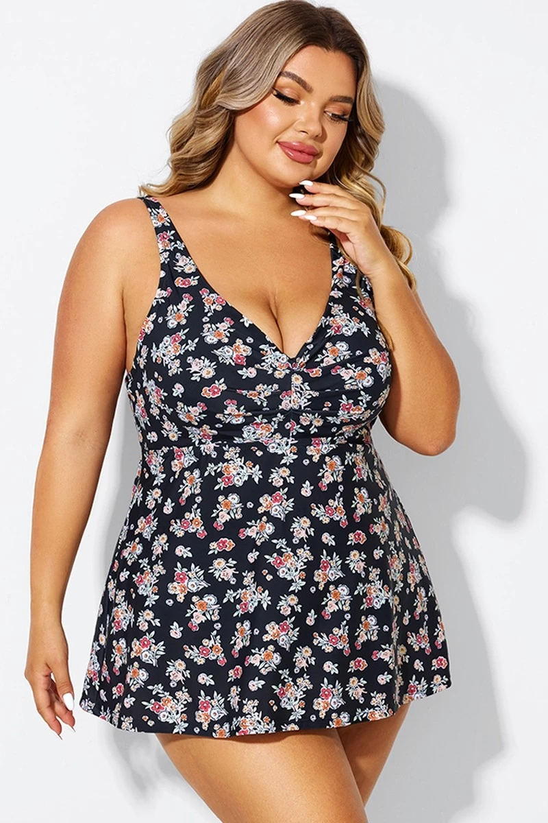 Floral Print V-Neck Adjustable Straps Tankini Top -Meetcurve Shop b sftan2003334 1