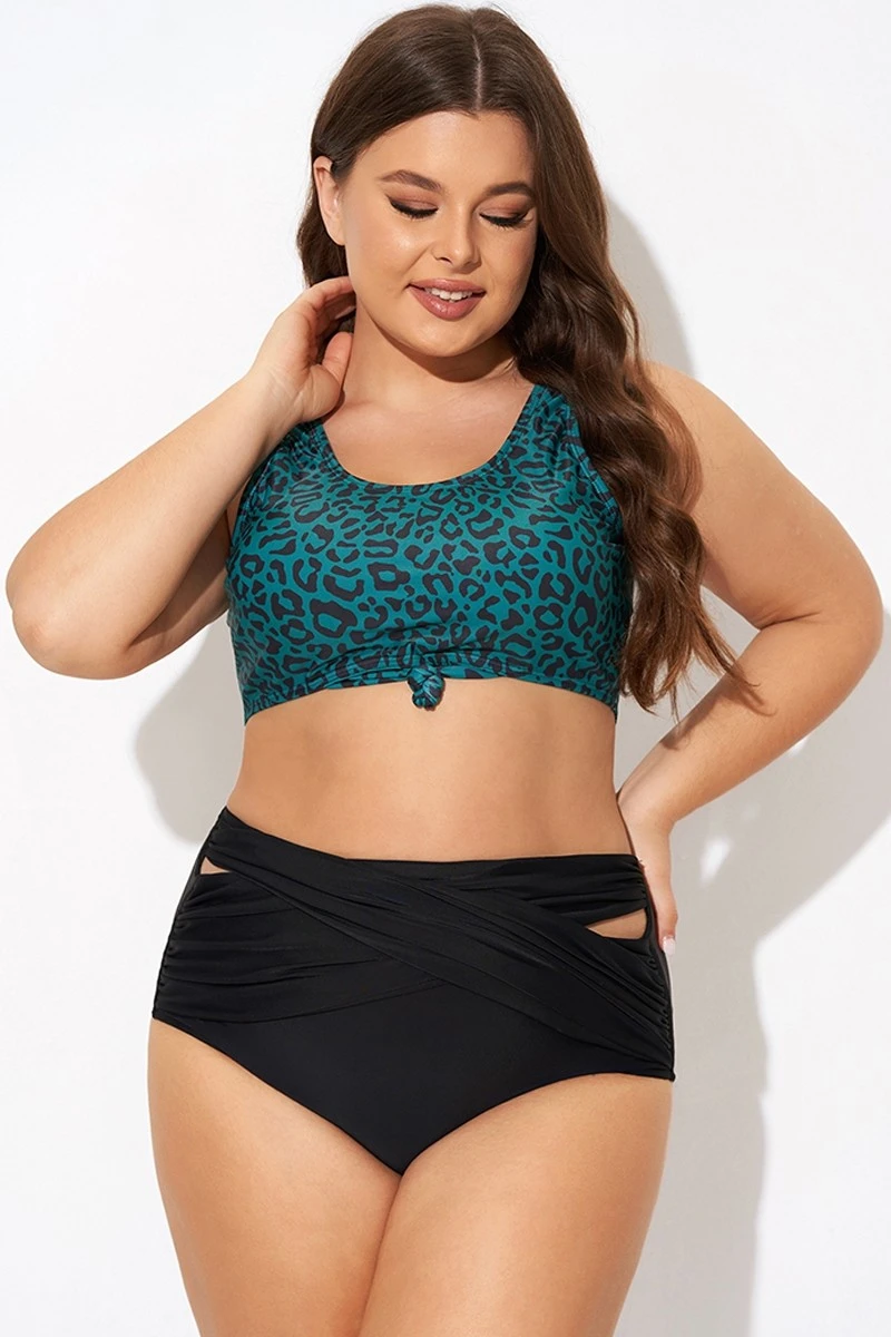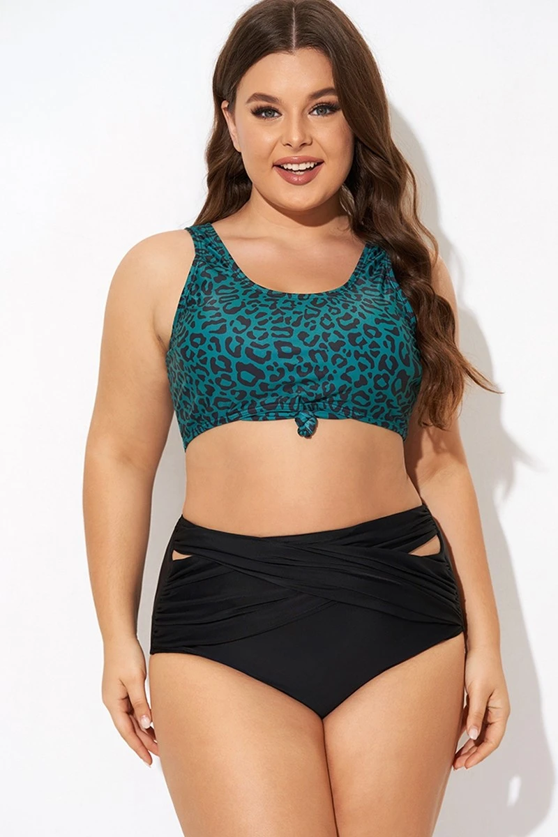 Green Leopard Print Knot Swim Bikini Top -Meetcurve Shop b debk148001 3