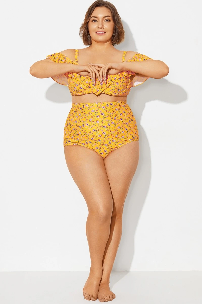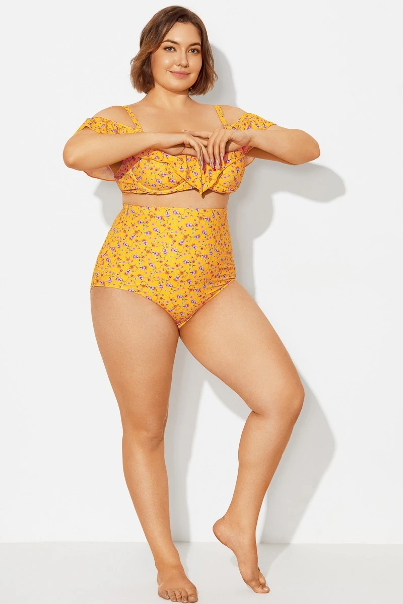 Yellow Floral High Waist Brief For Lady -Meetcurve Shop b debt002024 3